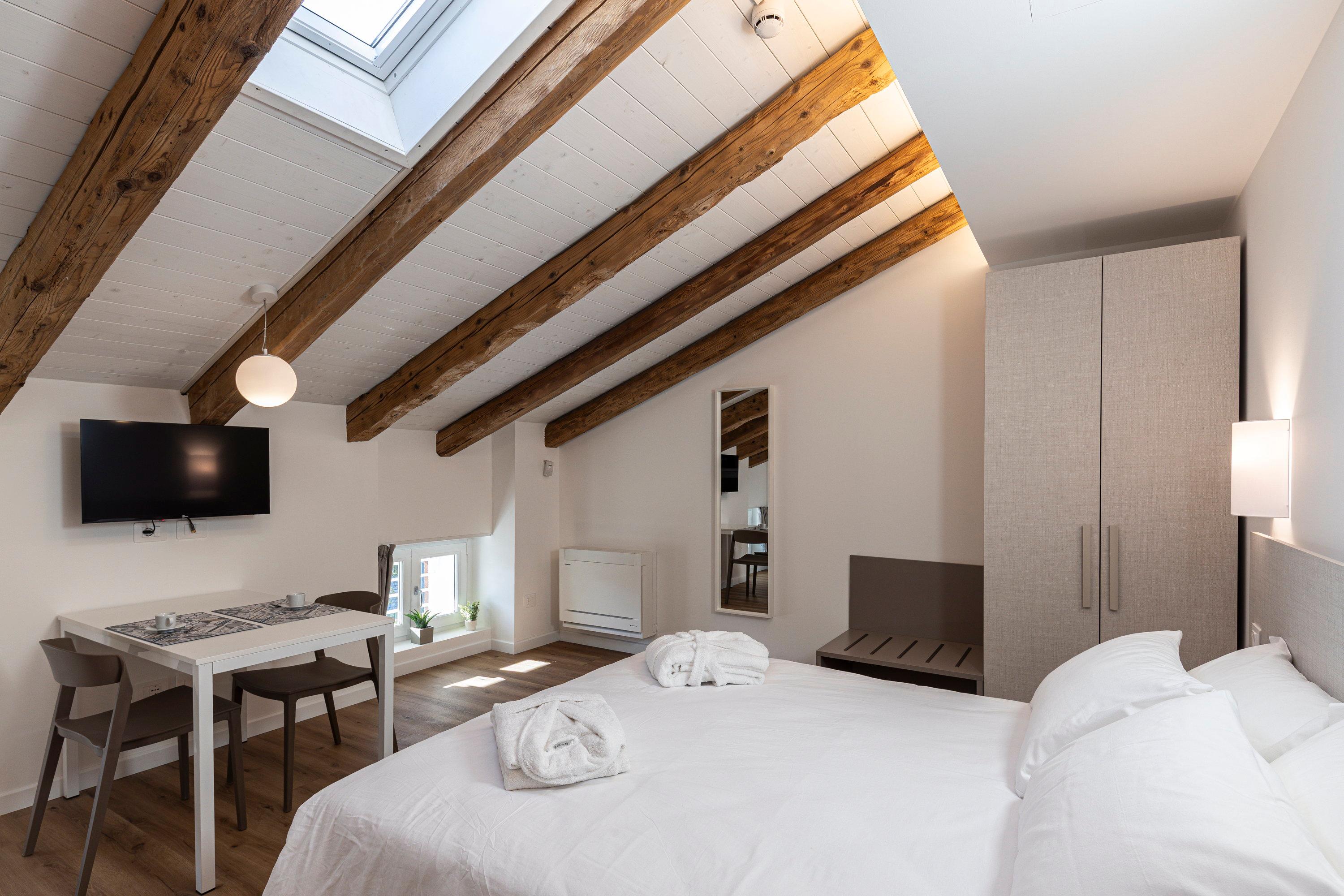 The attic apartment for two is a cozy and intimate space, featuring exposed beams that bring warmth and character to the rooms. The modern, functional furnishings create a pleasant contrast with this intimate atmosphere, offering the best of both worlds. Complete with a private bathroom, it ensures privacy and comfort, making it an ideal choice for a stay that combines authentic charm with contemporary convenience.