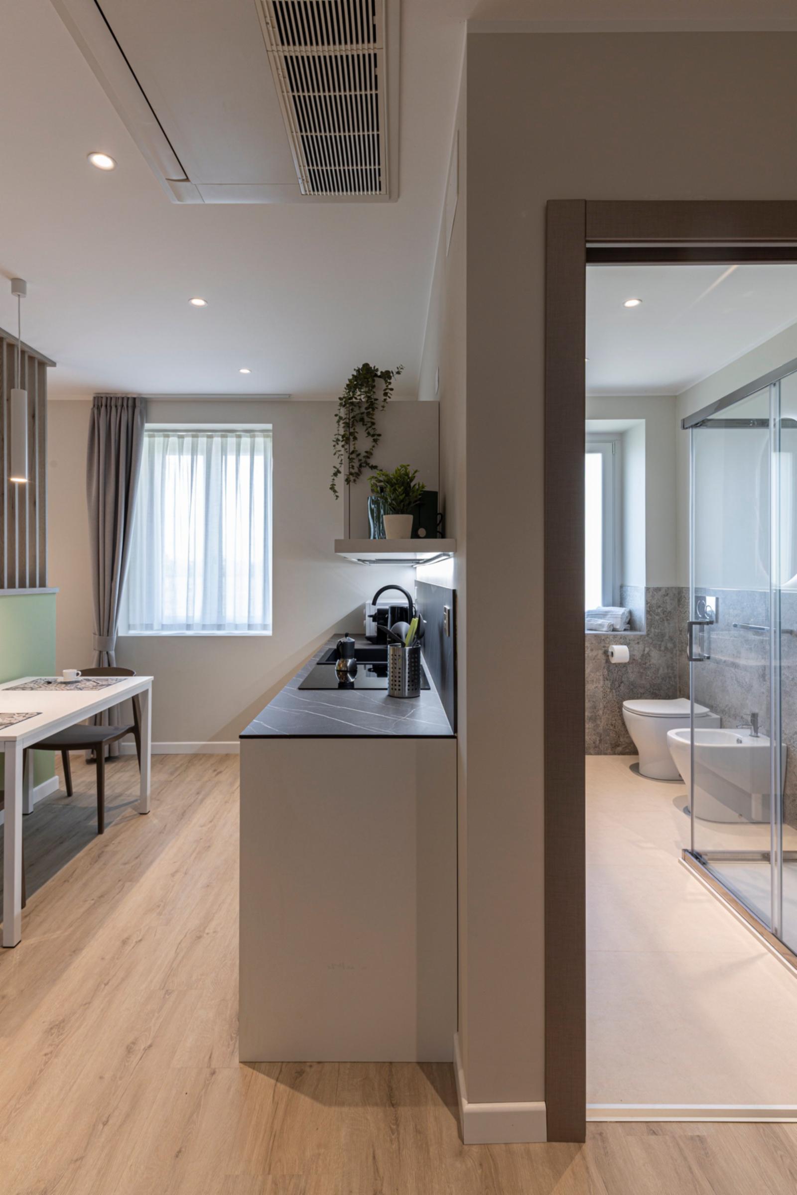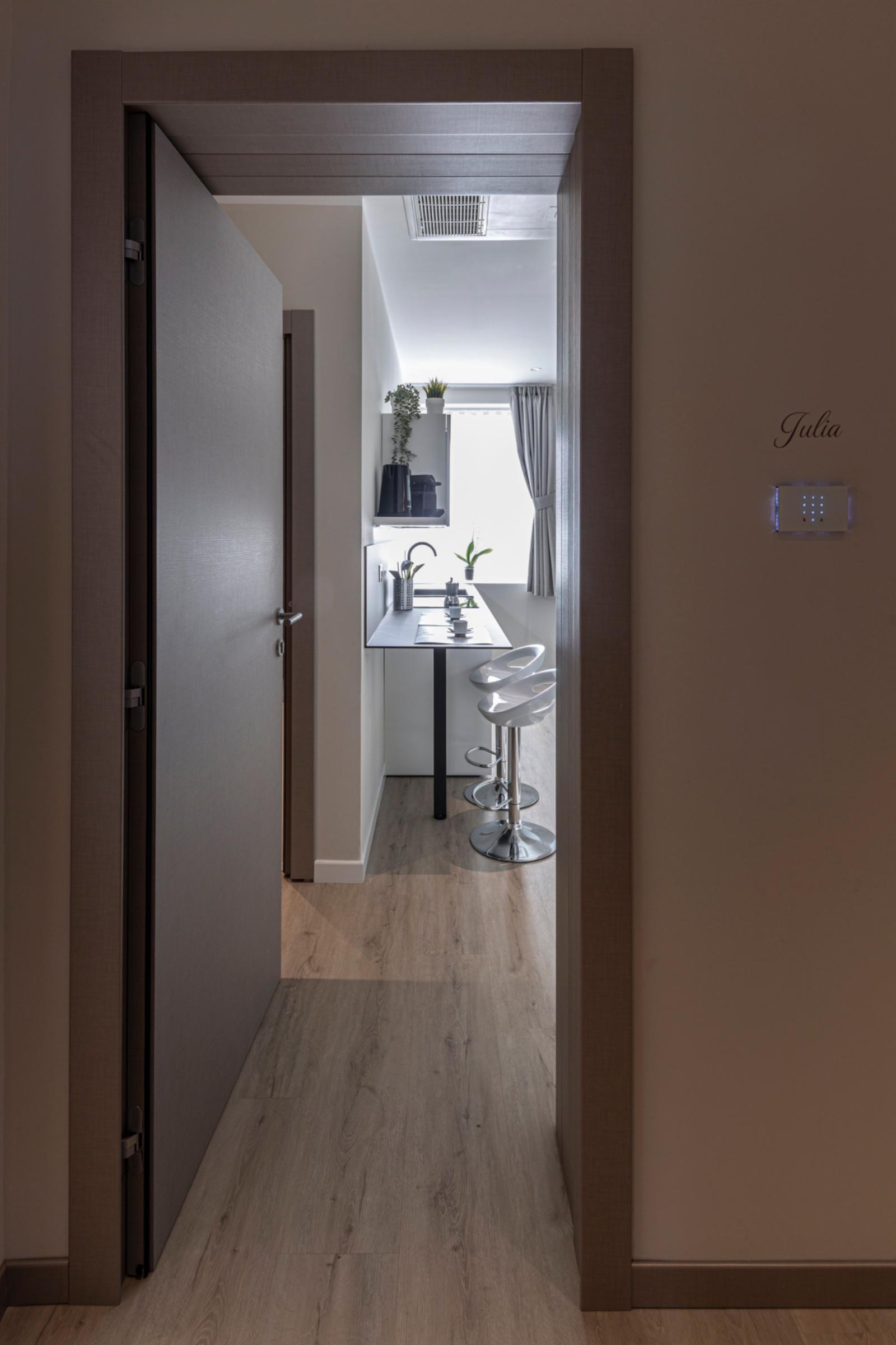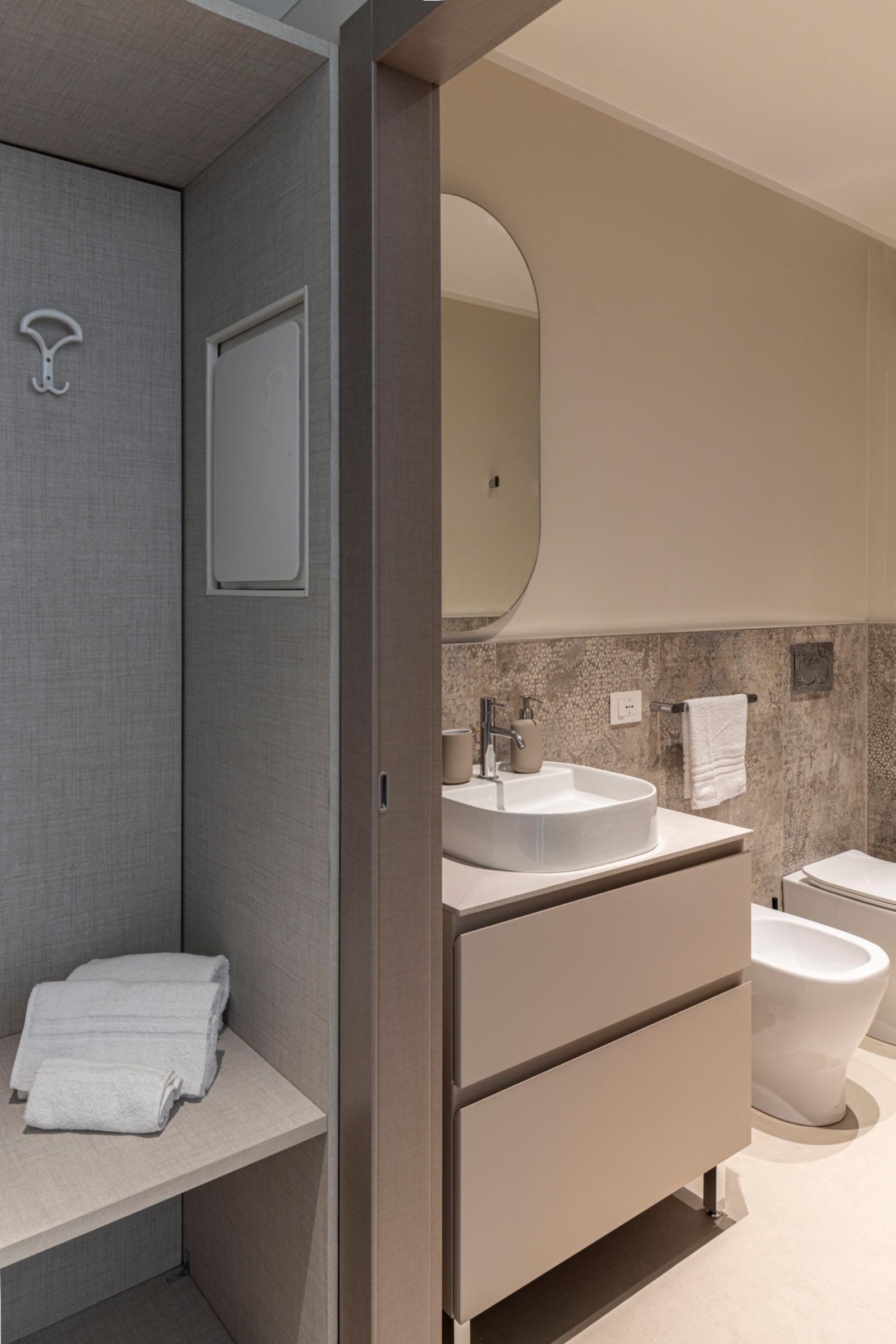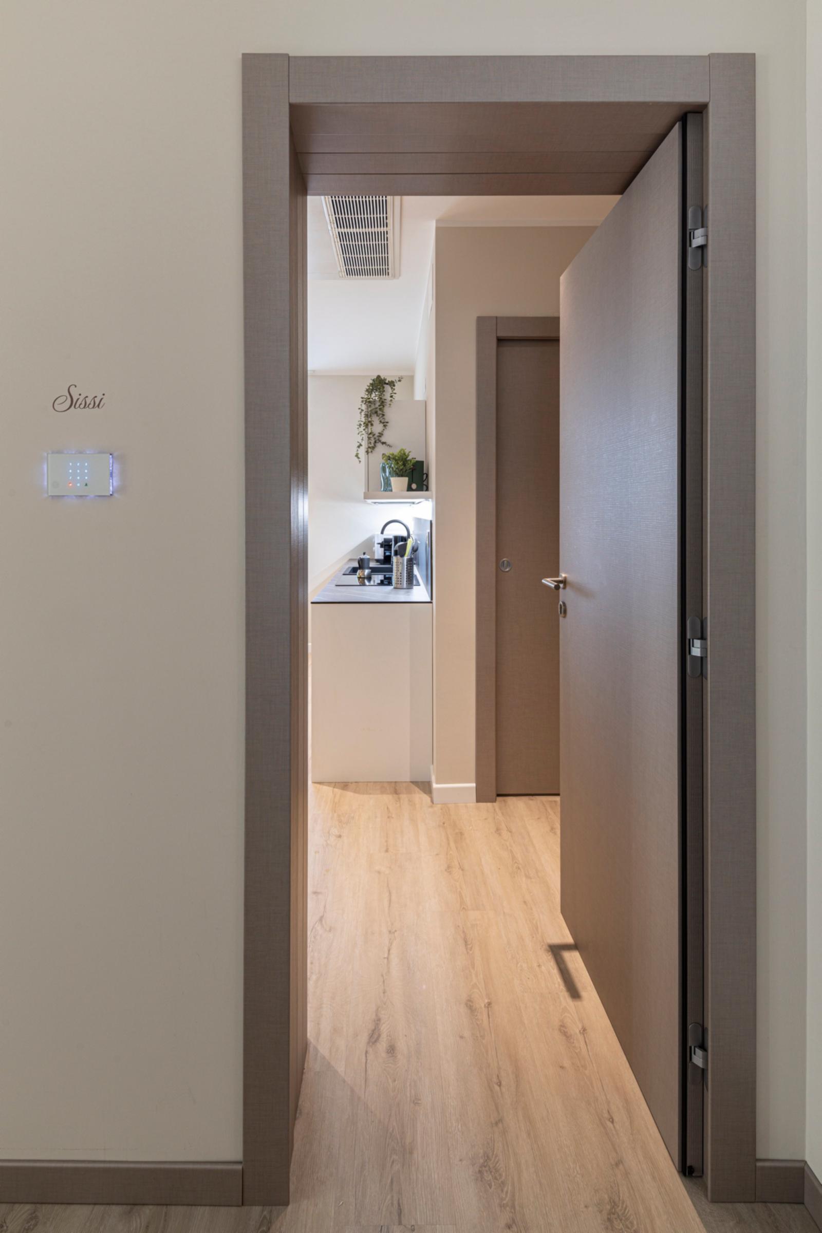 For larger groups, the Adria, Julia, and Sissi rooms combine to form the Miramare Apartment: a spacious and comfortable unified space. An internal door connects the three apartment entrances, transforming them into an integrated environment ideal for sharing time together. The modern, functional furnishings ensure comfort, while access to a private terrace and garden provides exclusive outdoor relaxation areas. Each room features a private bathroom, ensuring privacy and convenience. The Miramare Apartment is the perfect solution for groups of guests, combining independence and conviviality in an exclusive setting.