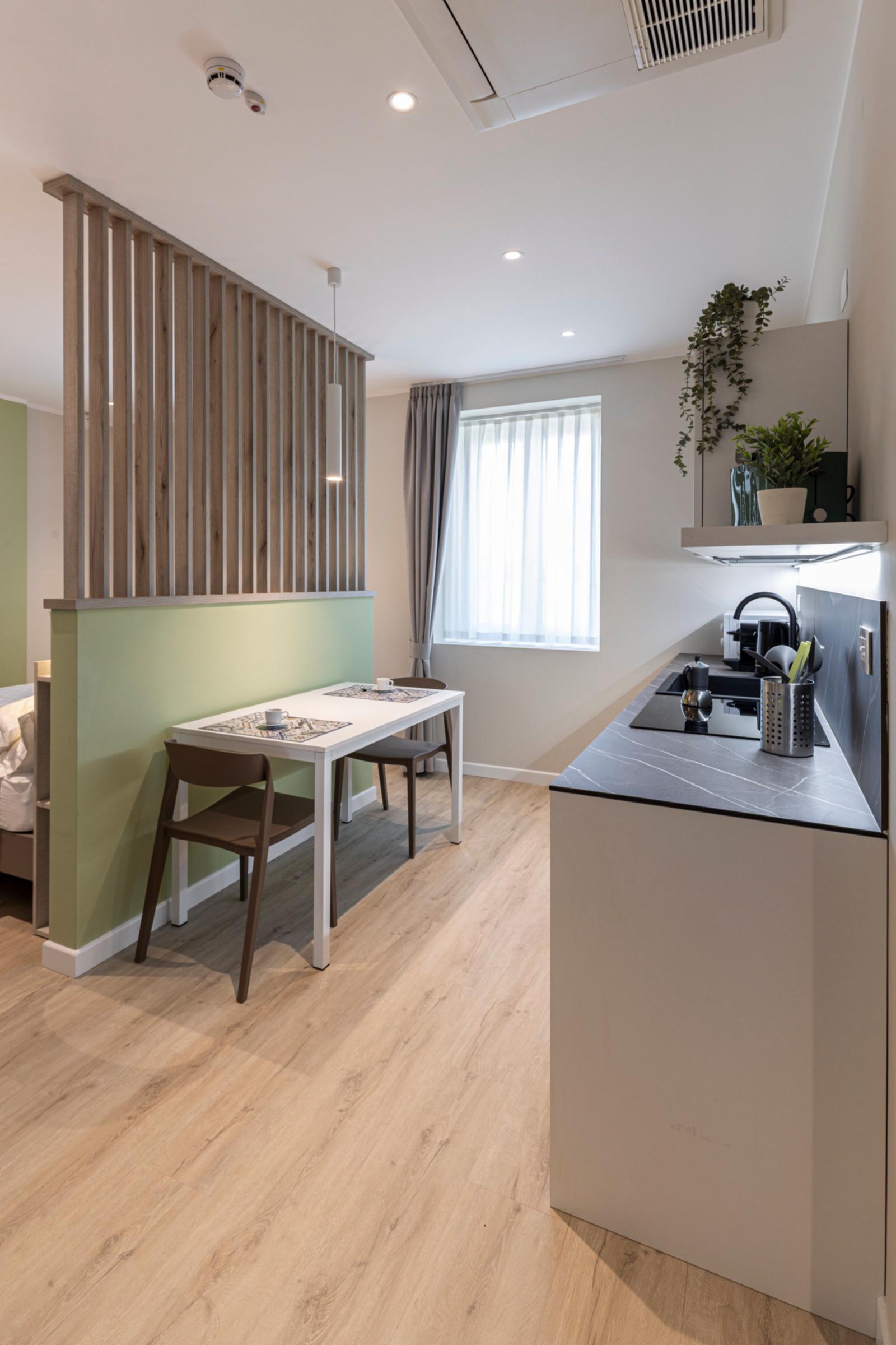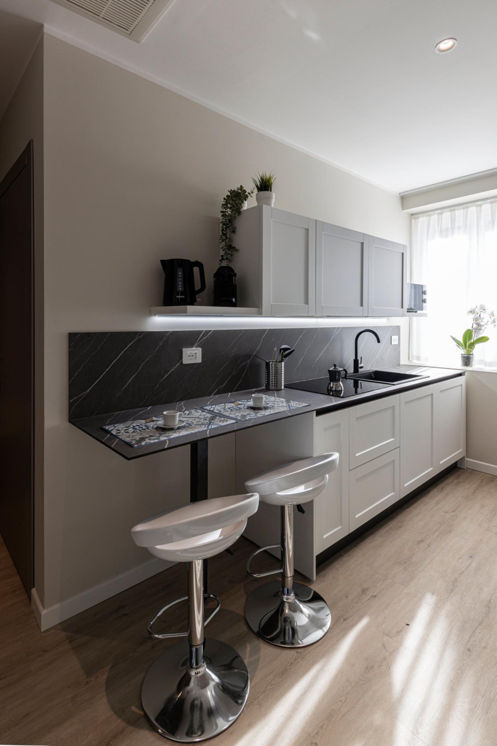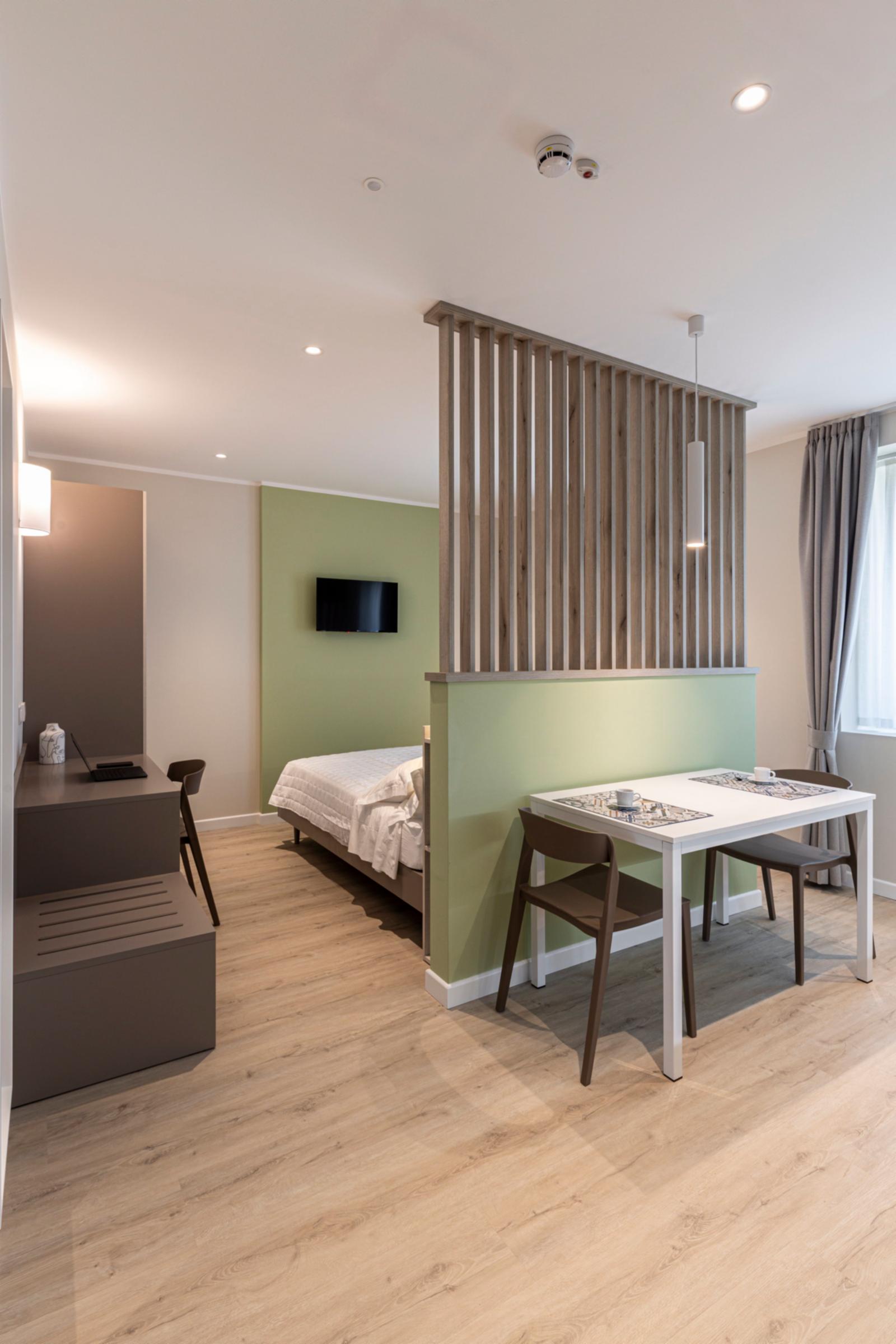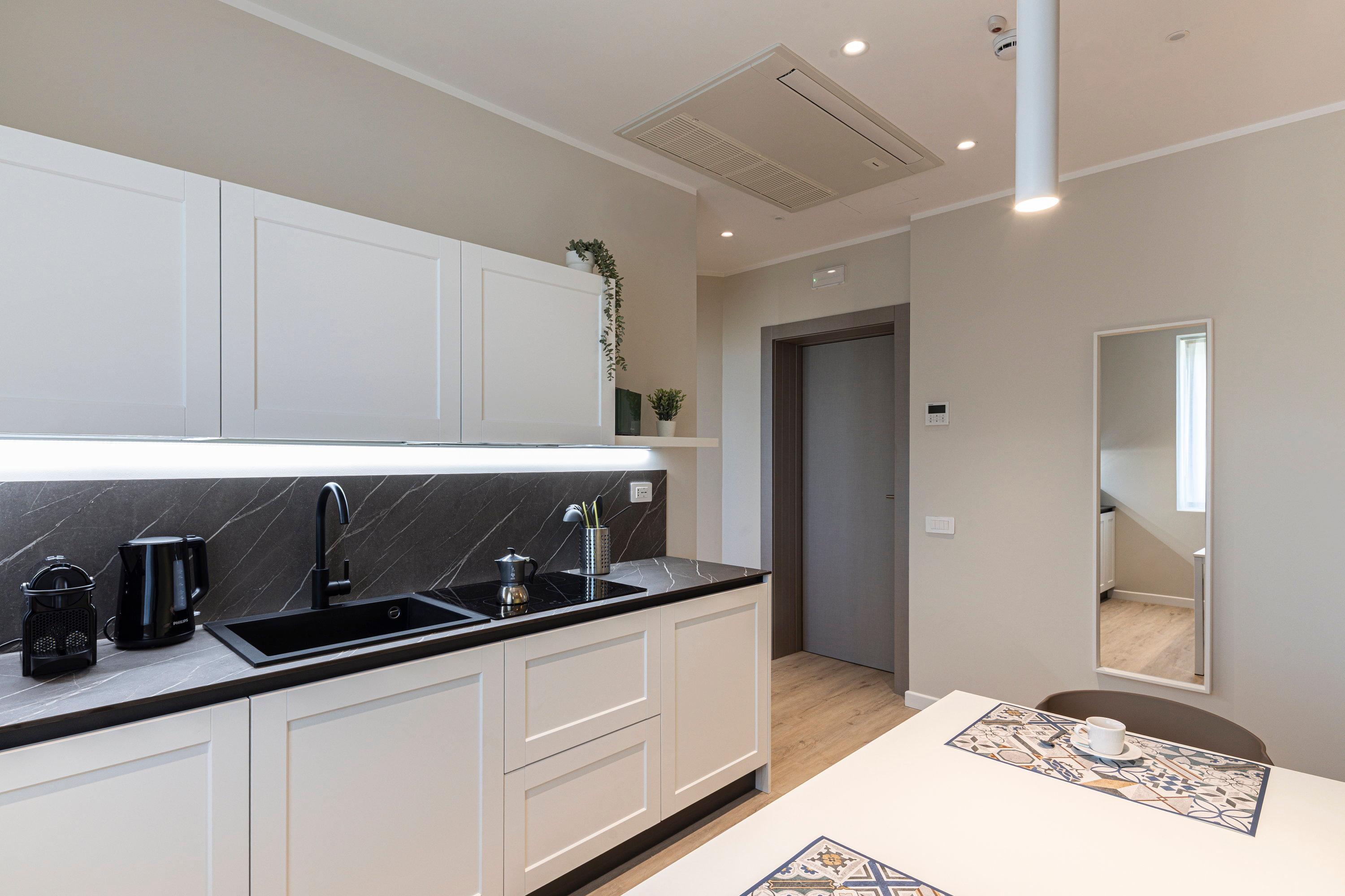 For larger groups, the Adria, Julia, and Sissi rooms combine to form the Miramare Apartment: a spacious and comfortable unified space. An internal door connects the three apartment entrances, transforming them into an integrated environment ideal for sharing time together. The modern, functional furnishings ensure comfort, while access to a private terrace and garden provides exclusive outdoor relaxation areas. Each room features a private bathroom, ensuring privacy and convenience. The Miramare Apartment is the perfect solution for groups of guests, combining independence and conviviality in an exclusive setting.
